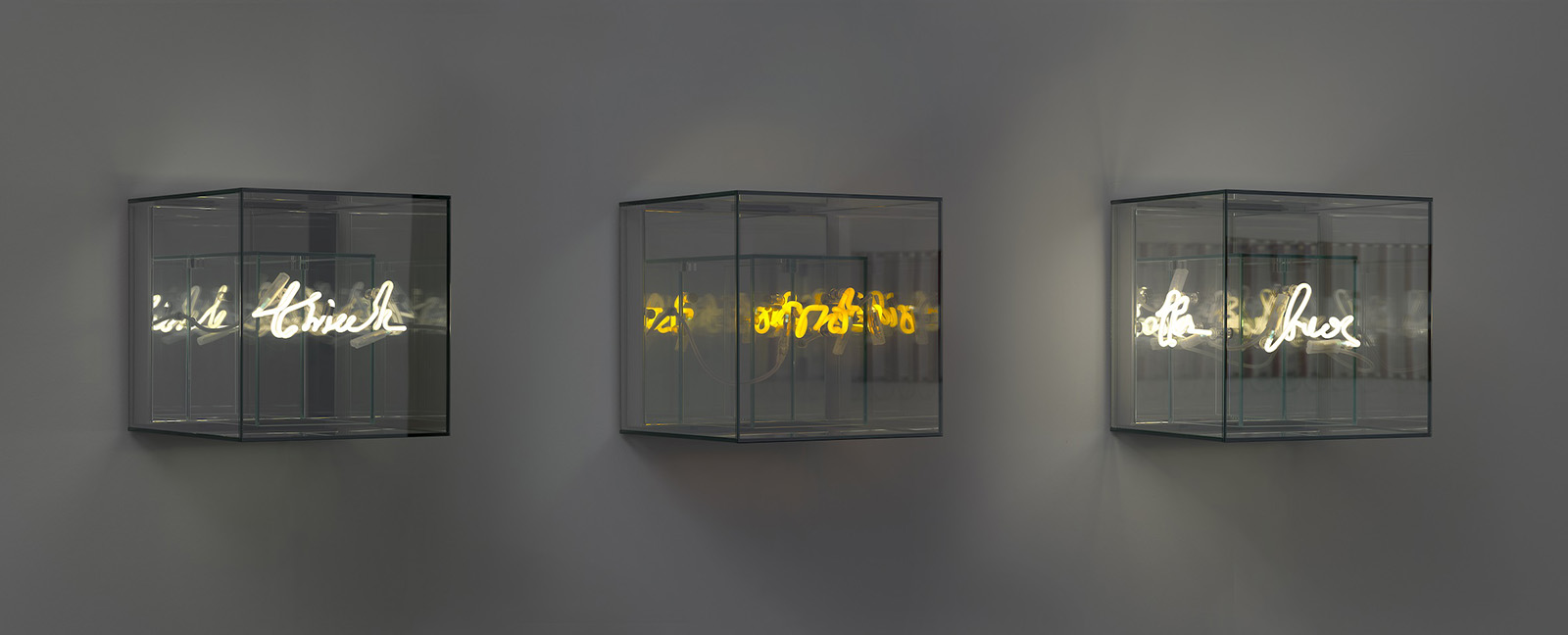 35 x 35 x 35 cm. 3 neon cubes, mirror / 3 neon küp, ayna.