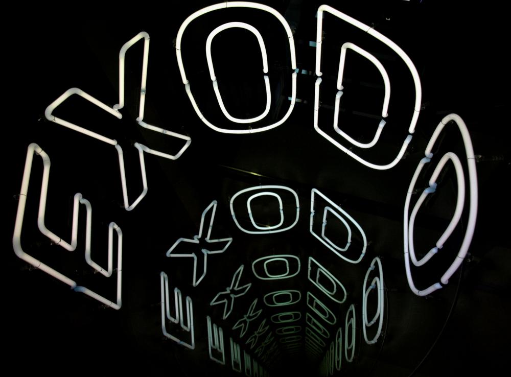 Iván Navarro Exodo, 2008. 122 x 122 x 86 cm. Neon, plywood, mirror, electric energy, Ed. 3/3 + 1 AP.