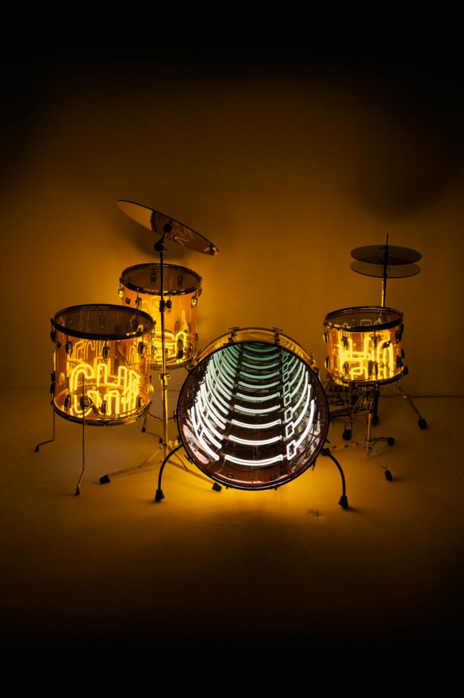 Iván Navarro Little Battle / Küçük Çarpışma, 2010. 123 x 189 x 91 cm. Neon, fiberglass battery, metal rods, mirror, one-way mirror and electricity, video animation, sound, Unique.