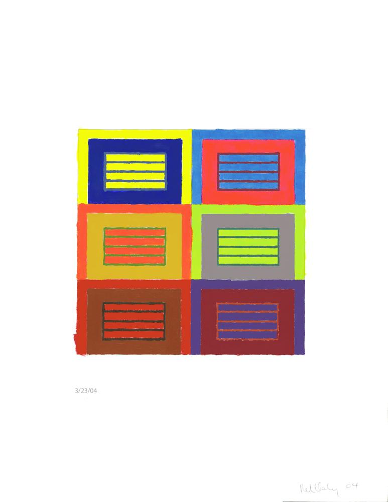 Peter Halley S/T (PHD 3.23.04), 2004. 63 x 50.50 cm. Acrylic, day-glo acrylic, metallic acrylic on computer printed paper.