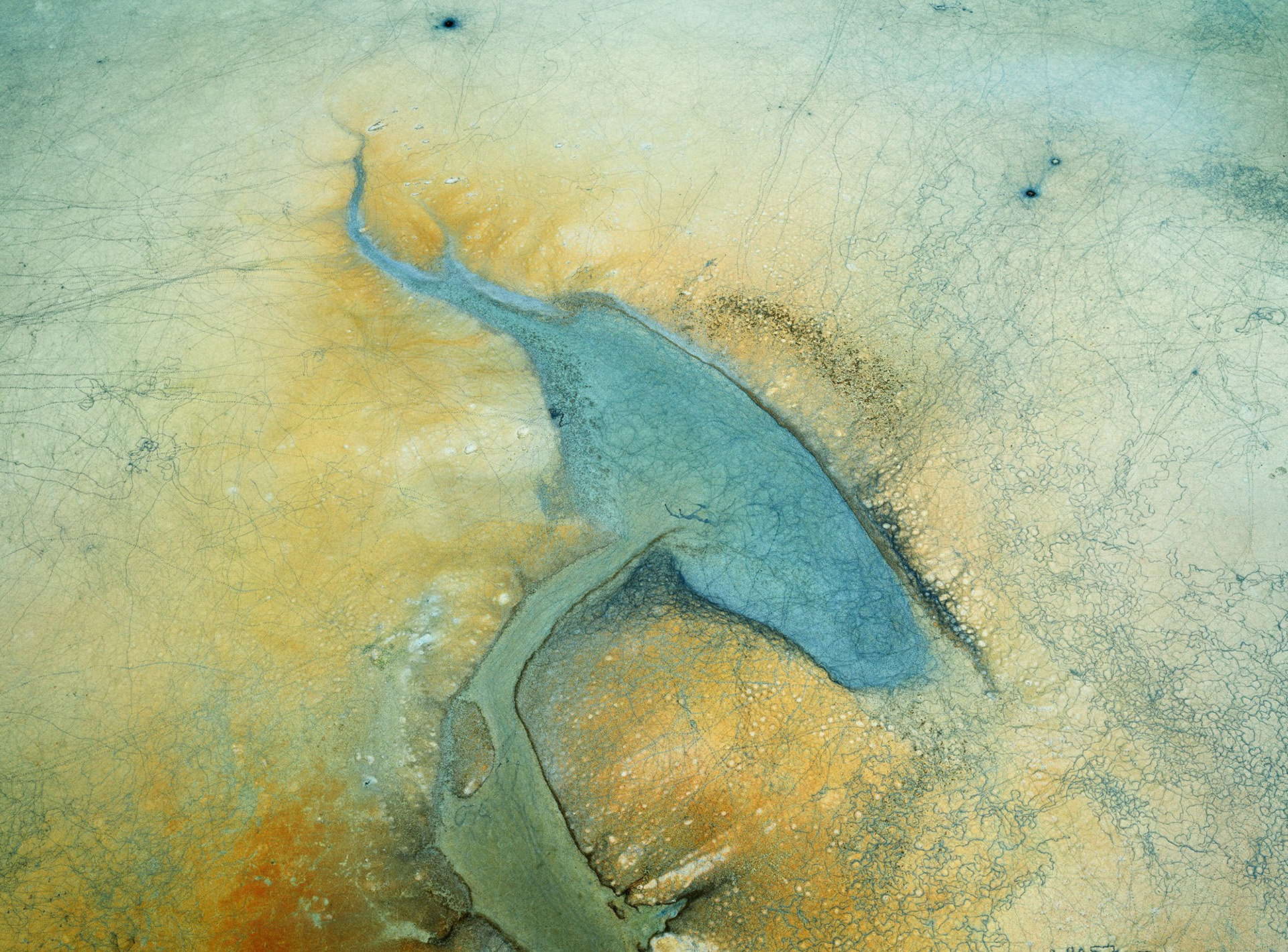 Edward Burtynsky, Tuz Gölleri #6, Kuşların Ayak İzi, Yarışlı Gölü, Burdur, Türkiye, 2022
