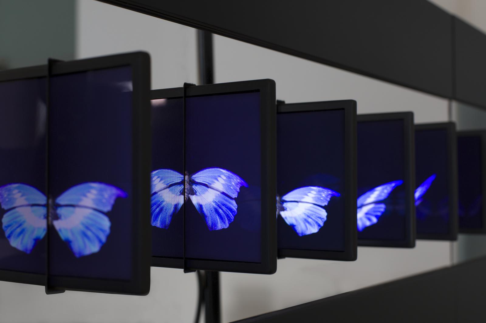 Dominic Harris Flutter / Çırpınış, 2011. 38 x 480 x 11 cm. Custom electronics and software, thermal cameras, mirror, aluminium, Ed. 10.