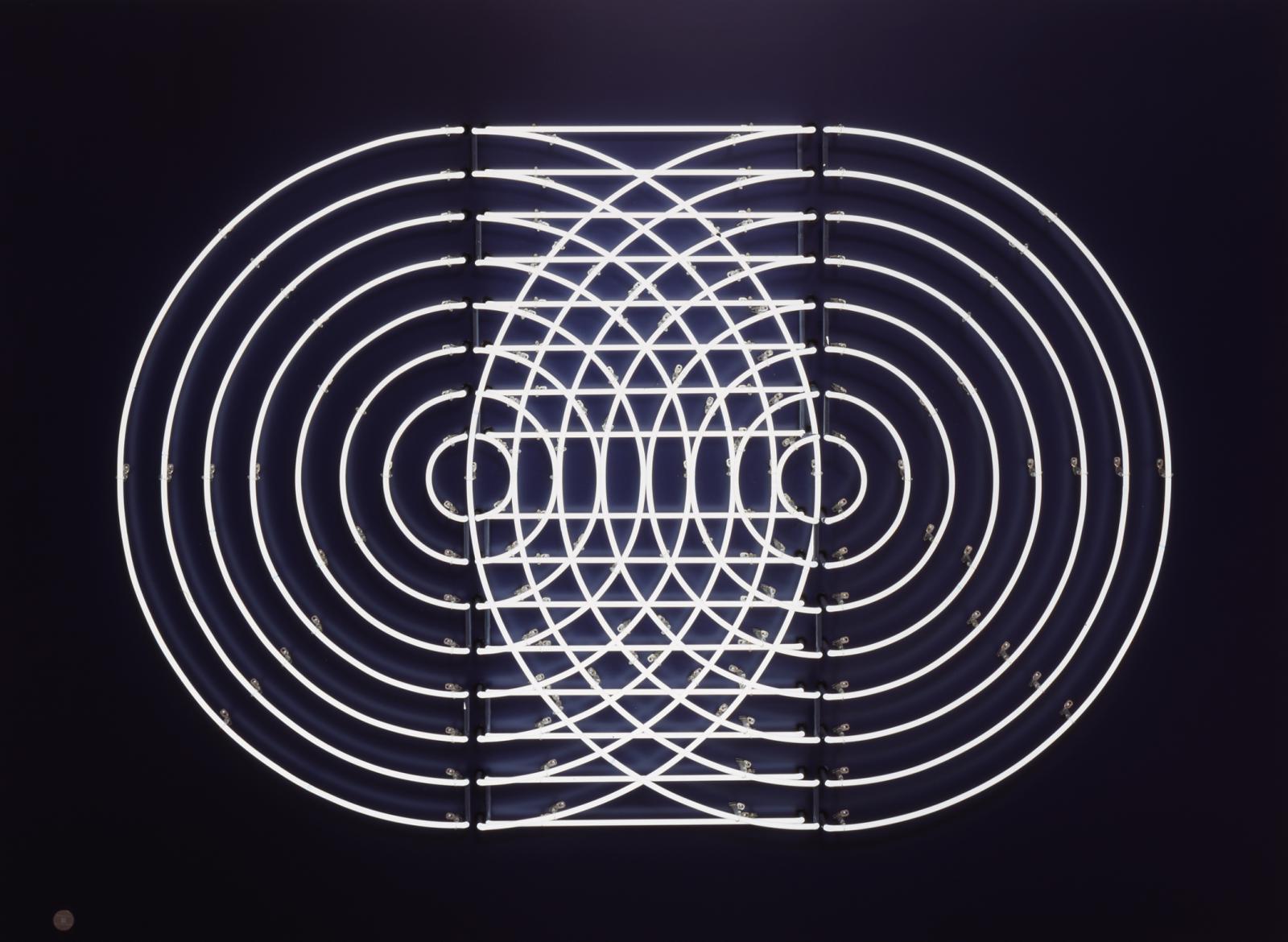François Morellet Ready Remake N°1, 2012. 170 x 145 x 17 cm. Acrylic on canvas on wood, 29 white neons, Ed. 1/3.