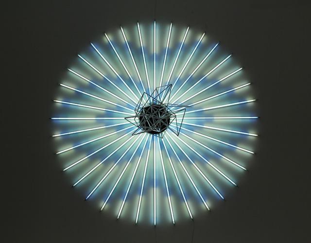 James Clar Staring at the Sun / Güneşe Bakmak, 2011. 250 cm diameter. Fluorescent tube lights color filters, steel tube, wire and motor.