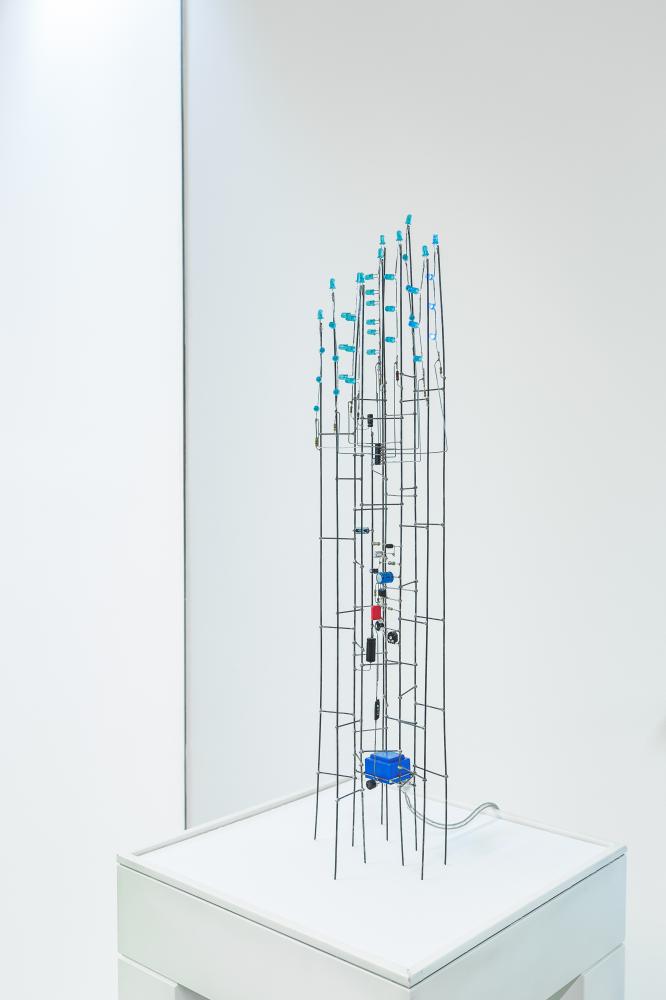 Peter Vogel Blue Lights / Mavi Işıklar, 2007. 51 x 15 x 15 cm . 40 LEDs, microphone, circuits, iron wire.