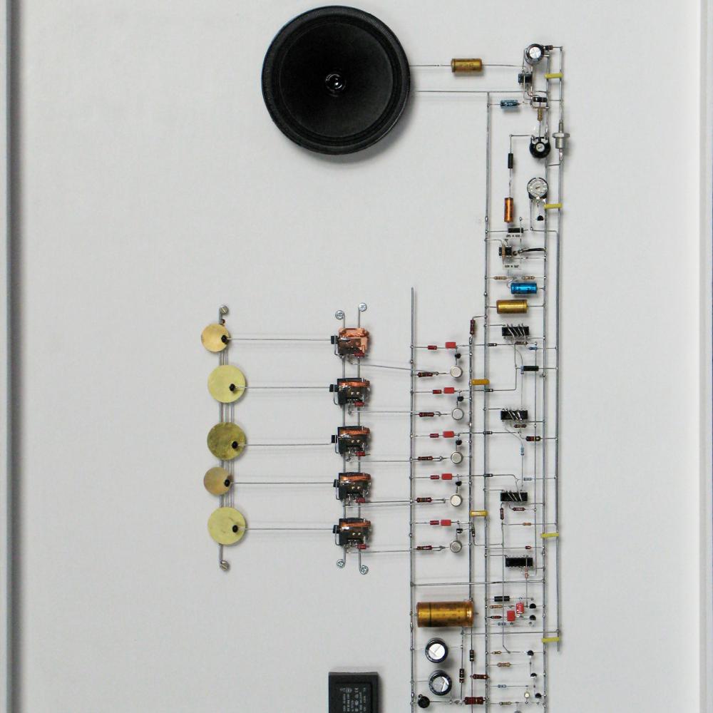 Peter Vogel Klöppelei, 2014. 68 x 50 cm. Electronics,Photo cells, speaker,.