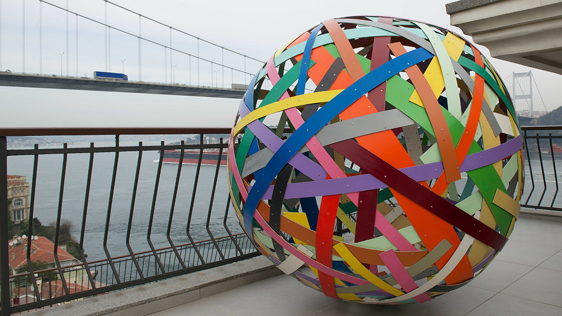 Beat Zoderer Patch Ball No. 3, 2009. 150 cm diameter. Acrylic on aluminum.