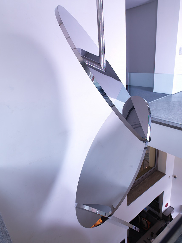 Doug Aitken Ascending Staircase / Yükselen Merdiven, 2024. 427 x 122,6 x 122,6 cm. Cilalı paslanmaz çelik, sessiz motor.