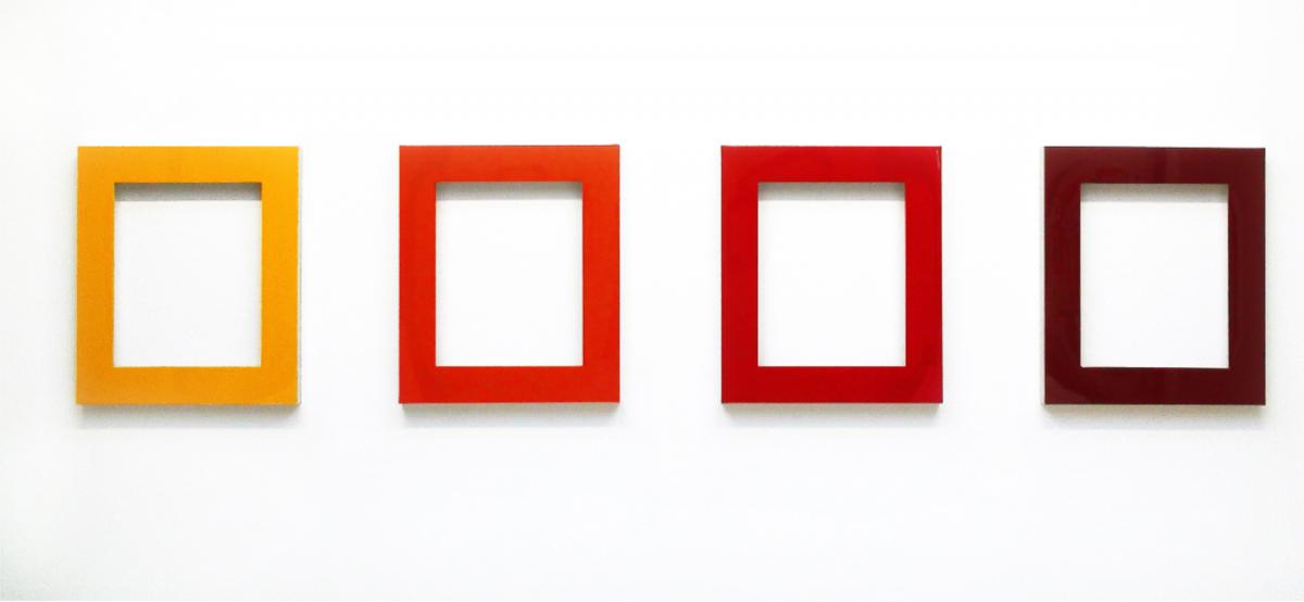 Gerold Miller Hard:edged 45-48, 2002. 56 x 48 x 4 cm (each). Laquered aluminum, Unique.