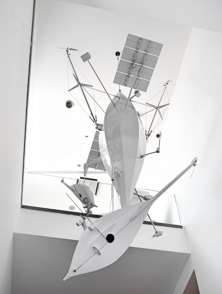 Björn Schülke SV1, 2011. 305 x 85 x 65. Fibre glass, epoxit, aluminium, wood, steel, car paint, solar cells, electronics, motors, guitar str.