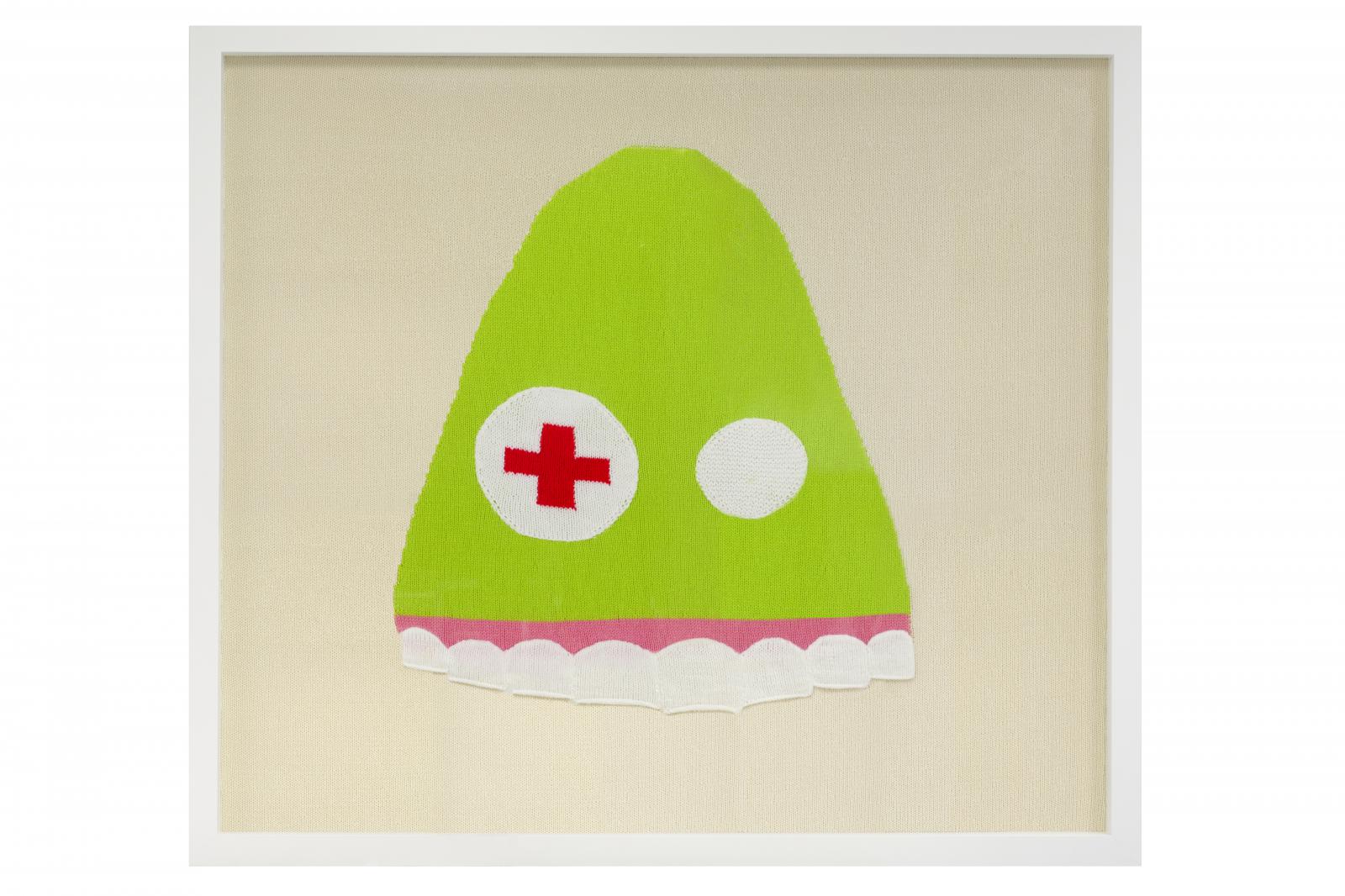 Lale Delibaş Untitled, unique / İsimsiz, ünik, 2004. 150 x 105 cm. Knitting and painting on canvas, unique.